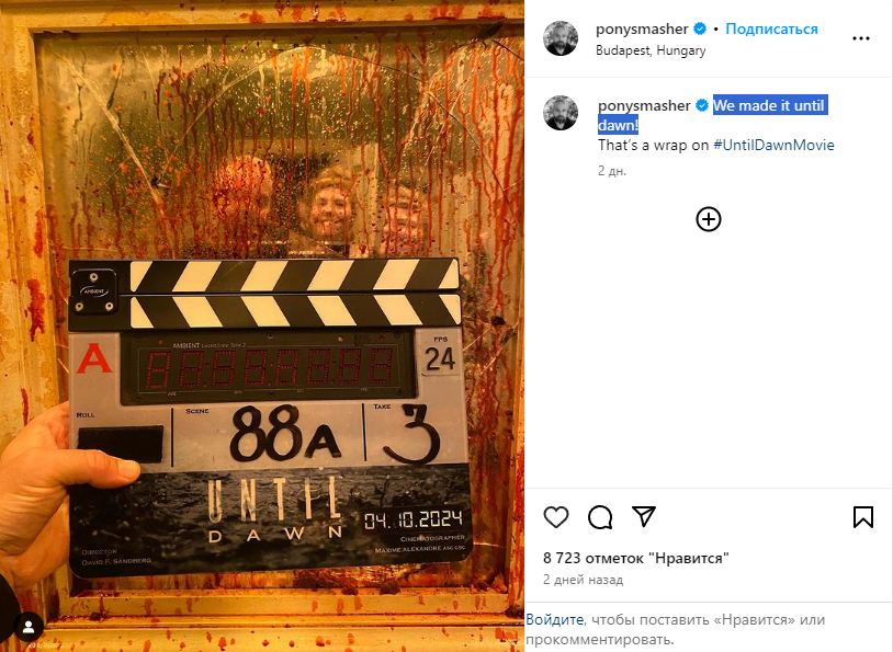 Киноадаптация игры Until Dawn была анонсирована ещё в январе. Как теперь уже известно, съёмки завершились 4 октября, остаётся только ждать даты премьеры, которую на данный момент Sony Pictures не анонсировала.