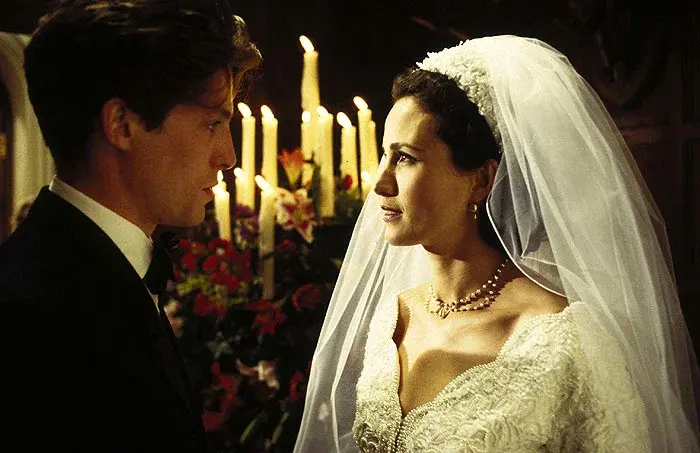 Сценарист Ричард Кёртис открыл новую страницу в жанре романтической комедии, а Хью Грант — в своей карьере. В «Четырёх свадьбах…» он сыграл обаятельного, слегка неуклюжего англичанина Чарльза, который пытается разобраться в чувствах и, как можно догадаться из названия, постоянно попадает на важные события: свадьбы, похороны — и снова свадьбы. Энди Макдауэлл в роли американки Керри добавляет перчинки в романтический сюжет, а богатый ансамбль второстепенных героев придаёт фильму теплоту и жизненность. Несмотря на скромный бюджет, фильм стал феноменом, собрав 245 миллионов долларов по миру и заняв позицию самого кассового британского фильма своего времени. Грант после этого стал звездой в США, а Кёртис — синонимом качественной романтики.