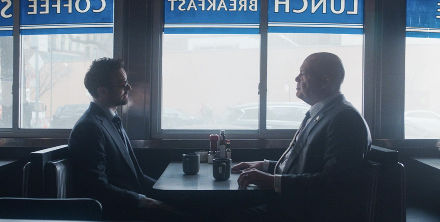 Здесь случается сцена, которая задаёт тон всему сезону (она была в трейлере, так что я не спойлерю) — встреча Мэтта и Фиска в кафе, где они оба предупреждают друг друга. Первый говорит, что придёт за вторым, если тот вновь станет действовать преступными методами, а второй говорит, что будет охотится за первым, если тот вновь наденет маску.