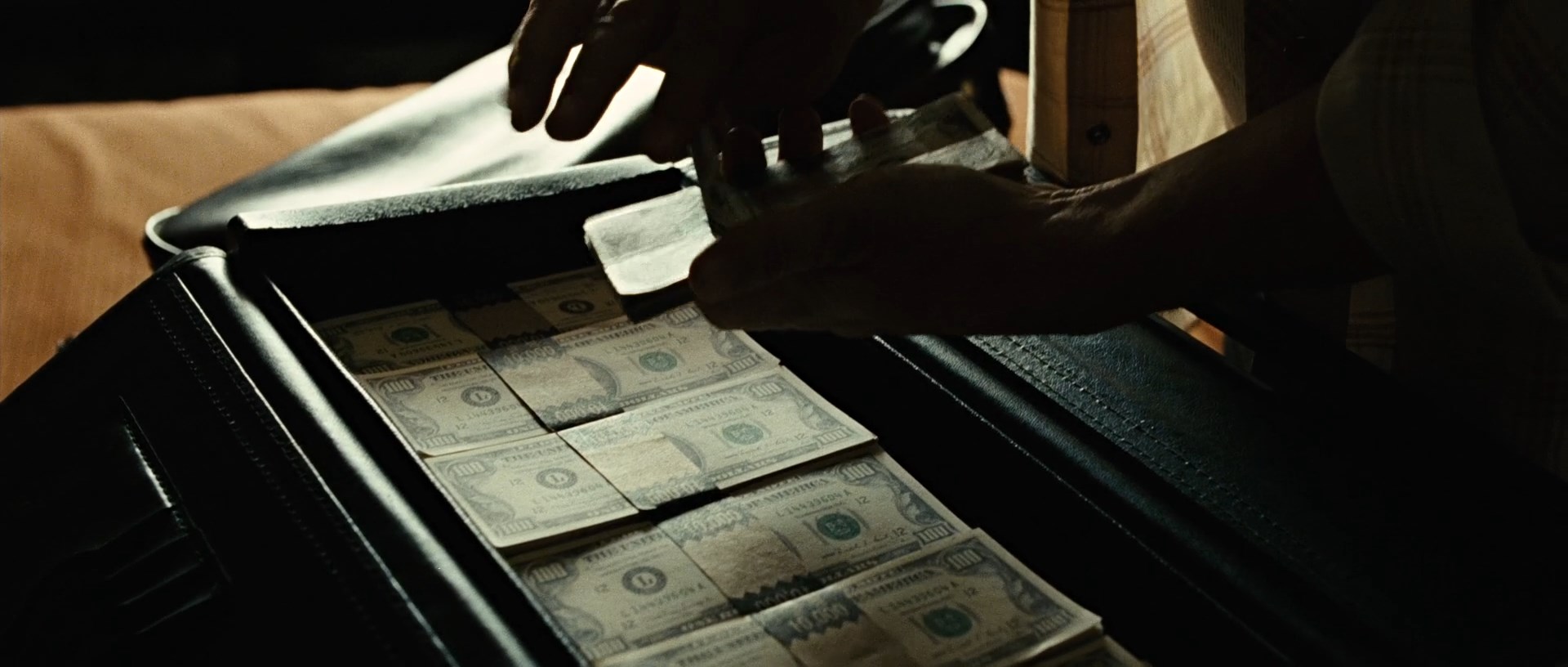 Мосс. Человек явно решительный и упёртый. Ветеран вьетнамской войны. Причем видно, что он не растерял боевых навыков. Живёт с женой жизнью обычного работяги в маленьком американском городке. В фильме не очень понятно устраивает его такой быт или нет, но скорее всего нет. Раз уж он так вцепился в эти два миллиона. Причем тут очень хорошо показали криминальное происхождение этих денег. Собственно, герой это всё наблюдал вместе со зрителем. Смелости ему явно не занимать, раз уж решил присвоить себе эти деньги.