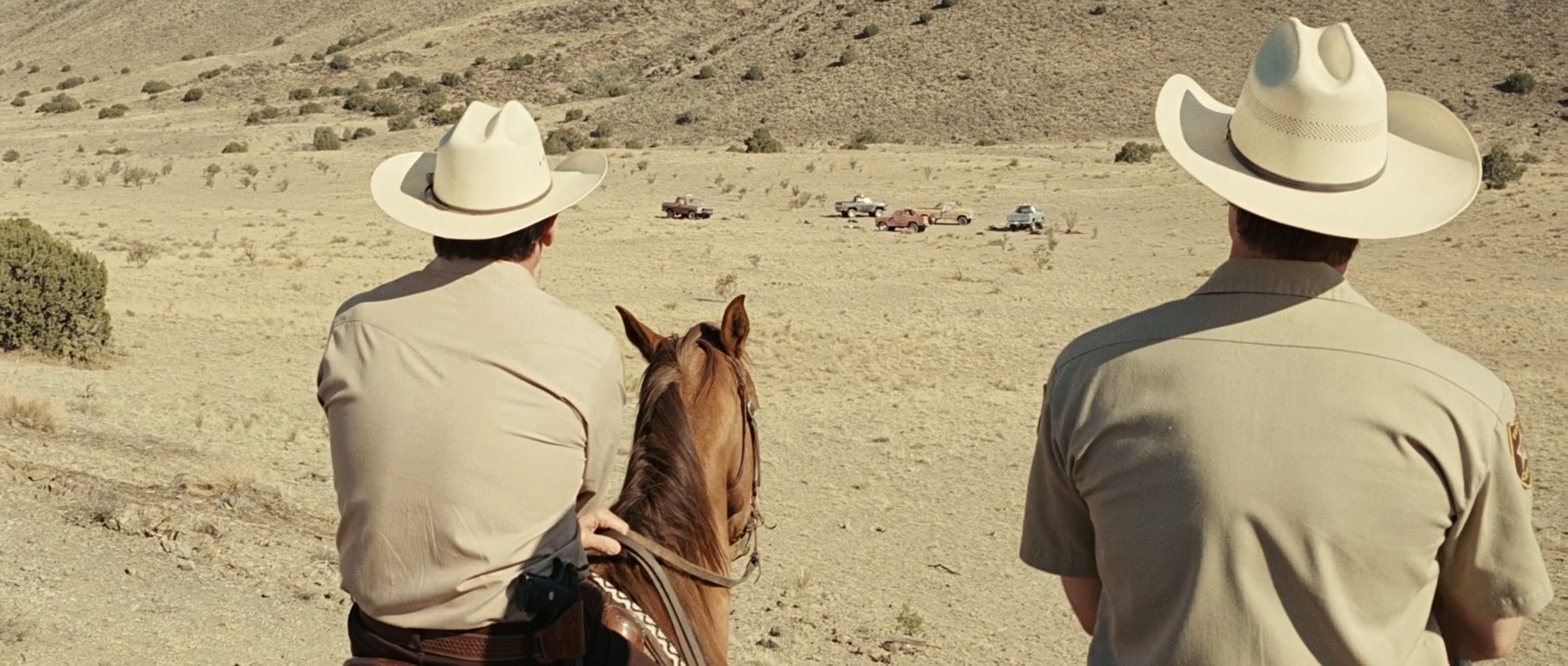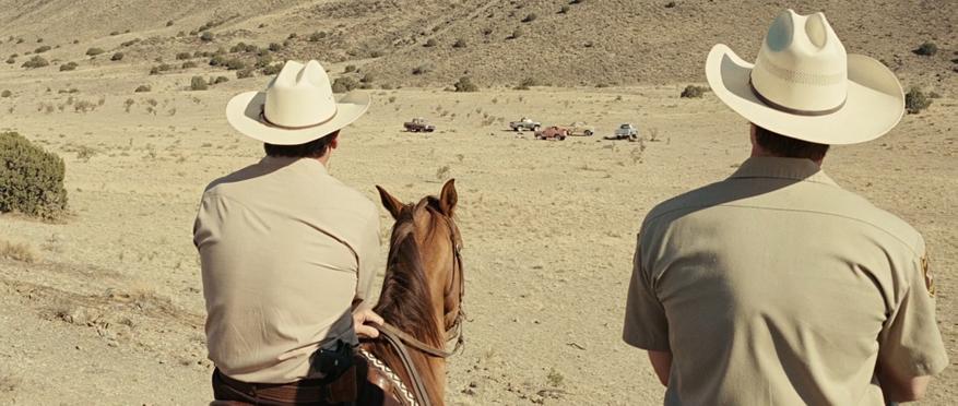 Здесь вообще не понятно кто главный герой. Скорее всего здесь никто из персонажей не является явным протагонистом. Вроде бы Мосс, но фильм скорее о Чигуре. Повествование ведётся вроде как от шерифа, но с ним не так и много сцен. В общем-то истории, где не надо за кого-то болеть тоже бывают весьма хороши. Тут смотря как подать. Здесь, в целом, с этим всё хорошо.