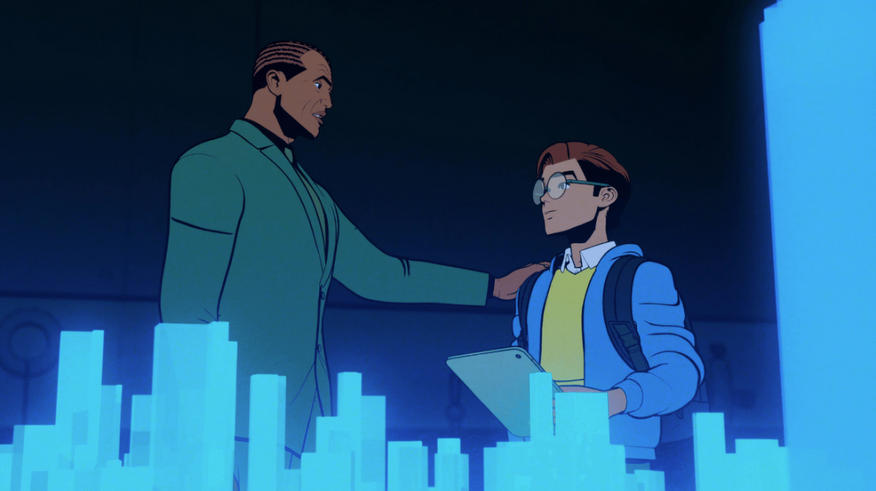 Нет здесь также и друзей Паркера из фильмов: Нэда Лидса и Мишель Джонс. Насколько я понял, Питер тут вообще в другой школе учится. Вместо них здесь будут Нико Минору — эта героиня раньше появлялась в сериале «Беглецы» от Hulu и тоже владеет некими способностями, которые в мульте пока не проявлялись — и Гарри Озборн, сын Нормана.