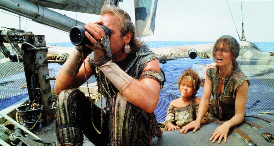 А ведь казалось, что риска нет никакого. Продюсеры и менеджмент студии просчитали, что аудитория достаточно «прогрета» «Безумным Максом», постапокалиптической франшизой, имевшей в американском прокате заметный успех. Что сработавшийся еще на «Робине Гуде» тандем Костнера с режиссером Кевином Рейнольдсом снова даст отличный результат. Что зрители будут ломиться в кинозалы, чтобы увидеть бескрайнюю гладь, поглотившую планету. И вроде бы даже со сценарием все было здорово — полярные льды растаяли, уровень мирового океана поднялся и затопил почти всю сушу, редкие выжившие ютятся на плавучих островах, отбиваясь от пиратов. Костнеру выпала роль Моряка, вынужденного сопровождать девушку с ребенком, которые ищут сушу. На бумаге это смотрелось замечательно.
