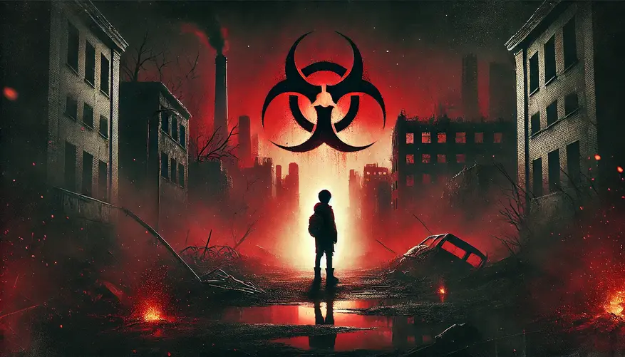 На постере, выполненном в фирменной минималистичной стилистике серии, изображён разрушенный мегаполис, затянутый мрачным красным туманом. Центральное место занимает силуэт мальчика с тревожным взглядом, что намекает на личную драму в эпицентре глобального кризиса.