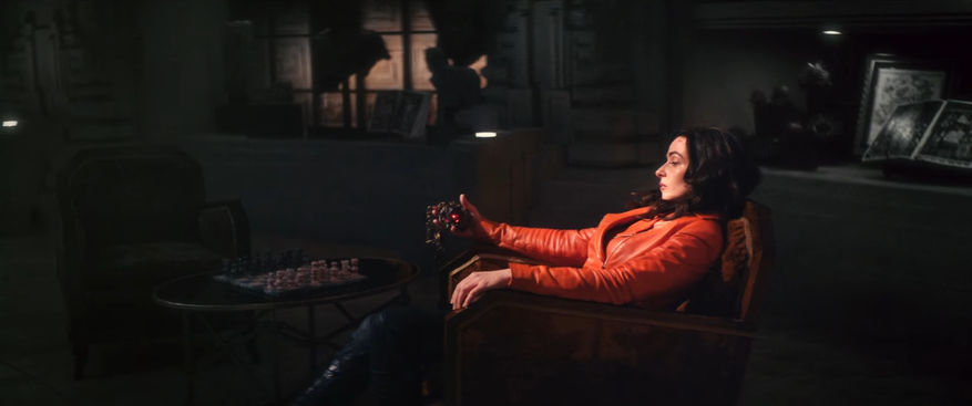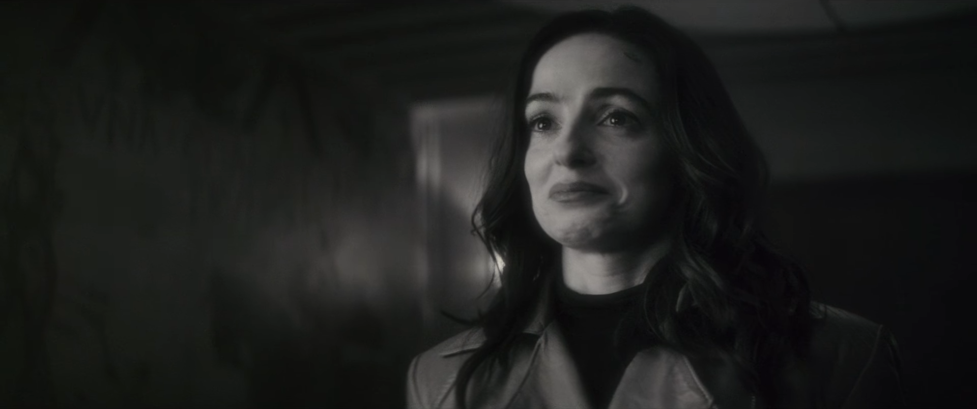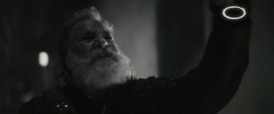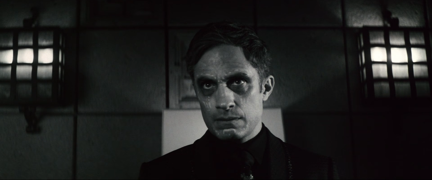 С этим пунктом вышло интересно. На протяжении всего хронометража зрителю демонстрируют чёрно-белую картинку с исключением лишь в виде блеска от Кровавого камня, который жаждут заполучить охотники. Однако под конец цвета начинают получать и все остальные элементы на экране, символизируя уход одной эпохи и начало другой. Но вот что не давало покоя, так это появлявшееся местами в кадре белое кольцо, как показано на одном из кадров ниже.