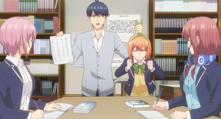 Теперь у Футаро есть шанс максимально использовать свою жизнь, взяв ее под свой контроль, а также помогая этой пятерке. Репетиторство кажется достаточно легким для такого умного парня как он, верно? Что ж, с первых нескольких эпизодов шоу ясно дает понять, что когда дело доходит до обучения сестер, они не совсем успешно справляются с задачами. Однако со временем прогресс все же наблюдается благодаря повышающемуся баллу в тестах. Все же настоящий вопрос состоит в том, сможет ли Футаро привести их к лучшему будущему. Как гаремная романтическая комедия, это создает опору сюжету, хотя он и не находится в центре внимания. На самом деле, предыдущие эпизоды, кажется, больше концентрируются на самих сестрах и на их отношениях между собой. И за ними действительно интересно наблюдать, так как у каждой свой уникальный характер и положительные с отрицательными сторонами.