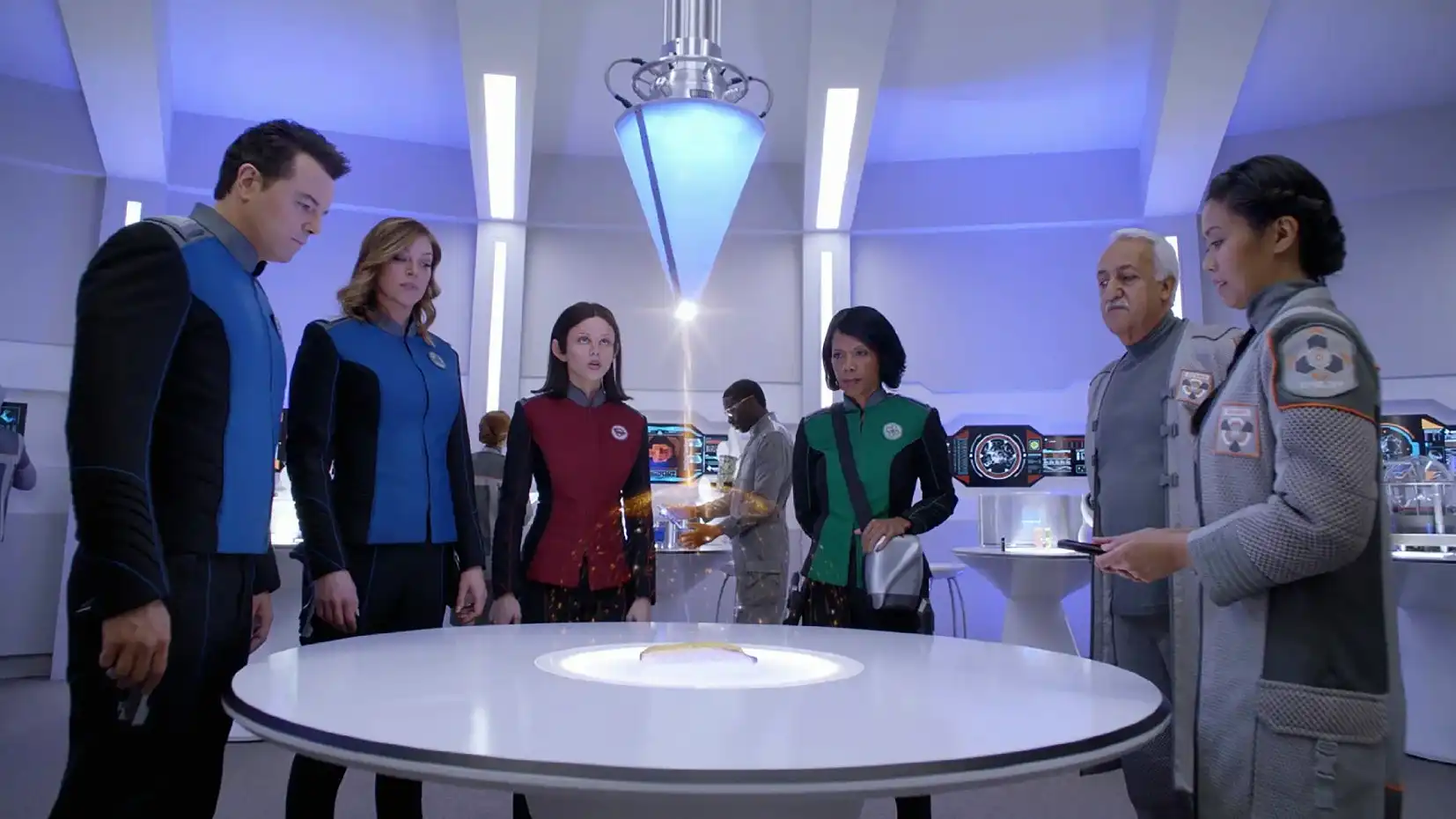 Капитан Эд Мерсер (Сет Макфарлейн) получает корабль землян «Орвилл», но его первый офицер — бывшая жена Келли. Экипаж исследует галактику, сталкиваясь с этическими дилеммами: гендерная революция у однополых существ, право на смерть для андроидов, война из-за мемов в соцсетях.