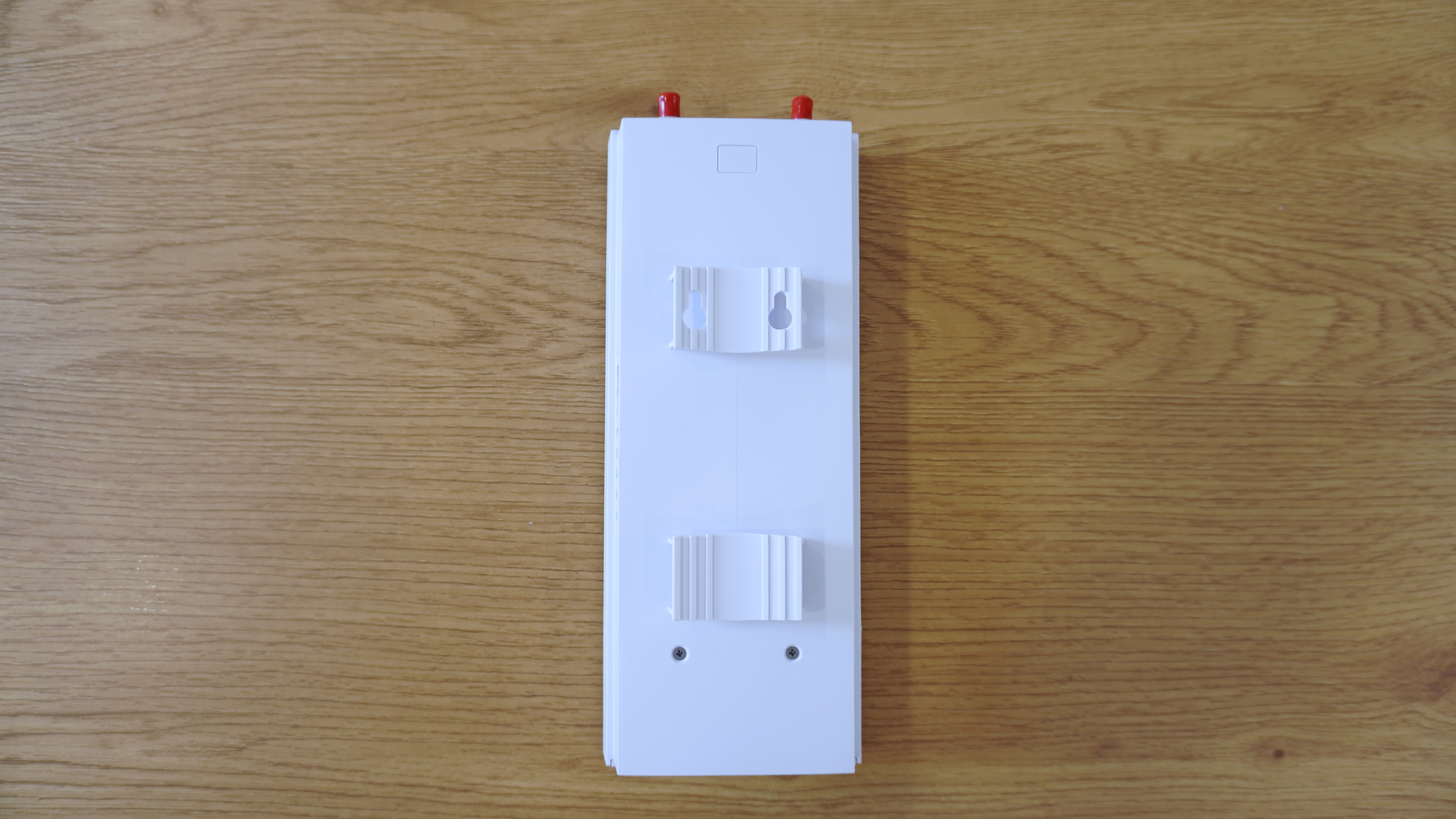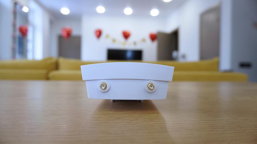 На верхнем торце предусмотрены два SMA-разъема с металлической резьбой, предназначенные для подключения съемных антенн, входящих в комплект. Эти разъемы, из коробки, защищены резиновыми колпачками, что актуально при временном демонтаже антенн, например, на время транспортировки. Сами антенны устанавливаются в вертикальной плоскости и допускают небольшой угол наклона, позволяя адаптировать направление сигнала в зависимости от расположения вышки оператора.