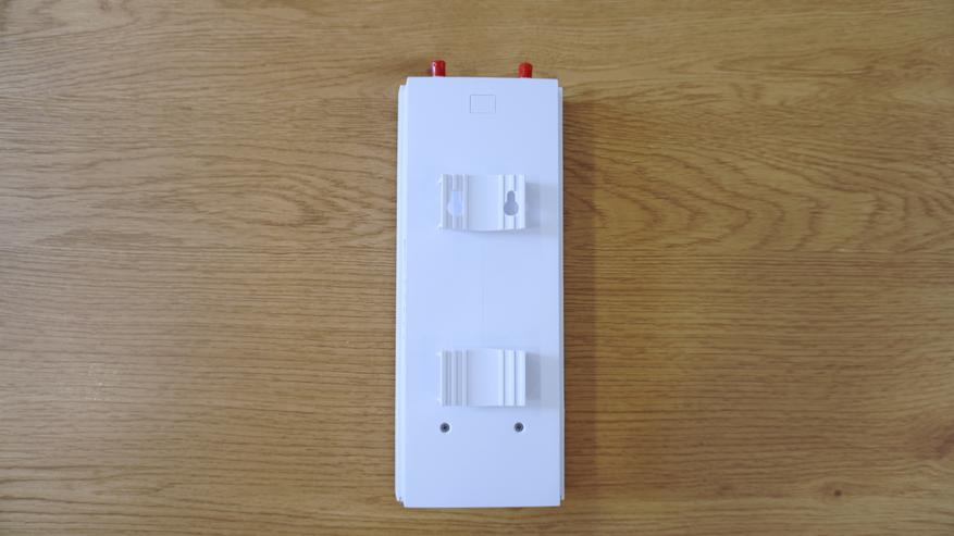 Если повернуть устройство обратной стороной, можно увидеть крепежную платформу. Она выполнена в виде двух пластиковых зажимов с выемками под монтаж на мачту или вертикальную стену. Расстояние между ними подобрано таким образом, чтобы обеспечить устойчивость при креплении даже в условиях сильных ветров.