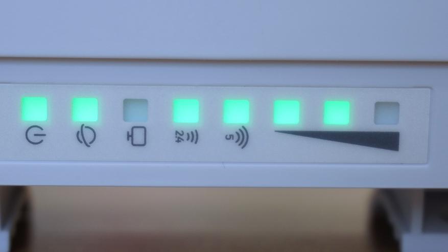 На правой боковой поверхности расположен ряд светодиодных индикаторов состояния. Они отображают питание, активность портов и беспроводных интерфейсов, а также уровень сигнала сотовой сети. Светодиоды закрыты полупрозрачной вставкой, яркость подсветки умеренная, ее видно даже при дневном освещении, что упрощает контроль состояния без необходимости подключения к интерфейсу управления.