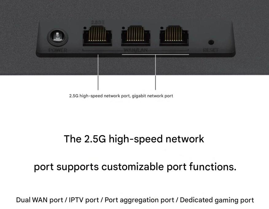 Набор интерфейсов включает два порта WAN с поддержкой функции IPTV и выделенный физический порт для игрового трафика. В программное обеспечение интегрированы четыре игровых ускорителя, а также функции удаленного пробуждения ПК и родительского контроля. Согласно данным производителя, общая скорость передачи данных в беспроводной сети была увеличена на 20% по сравнению с решениями предыдущего поколения без поддержки 4K QAM.