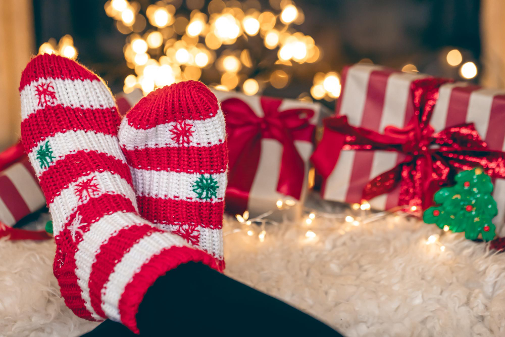 Кто сказал, что практичные вещи не могут быть забавными? Тёплые носки с оленями в шарфиках, снеговиками в шапках или надписями в духе «На работу? Серьёзно? Сегодня?» вызывают улыбку каждое утро. Особенно хороши модели из натурального хлопка с добавлением шерсти — в них действительно тепло, а не просто красиво.