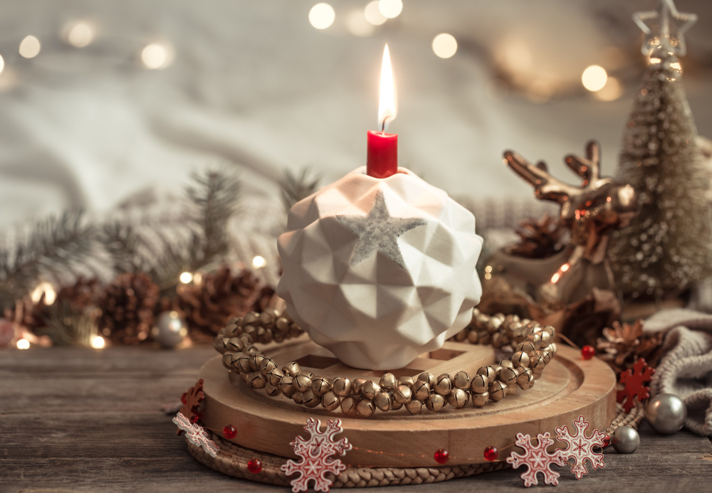 Ароматические свечи в новогоднем оформлении