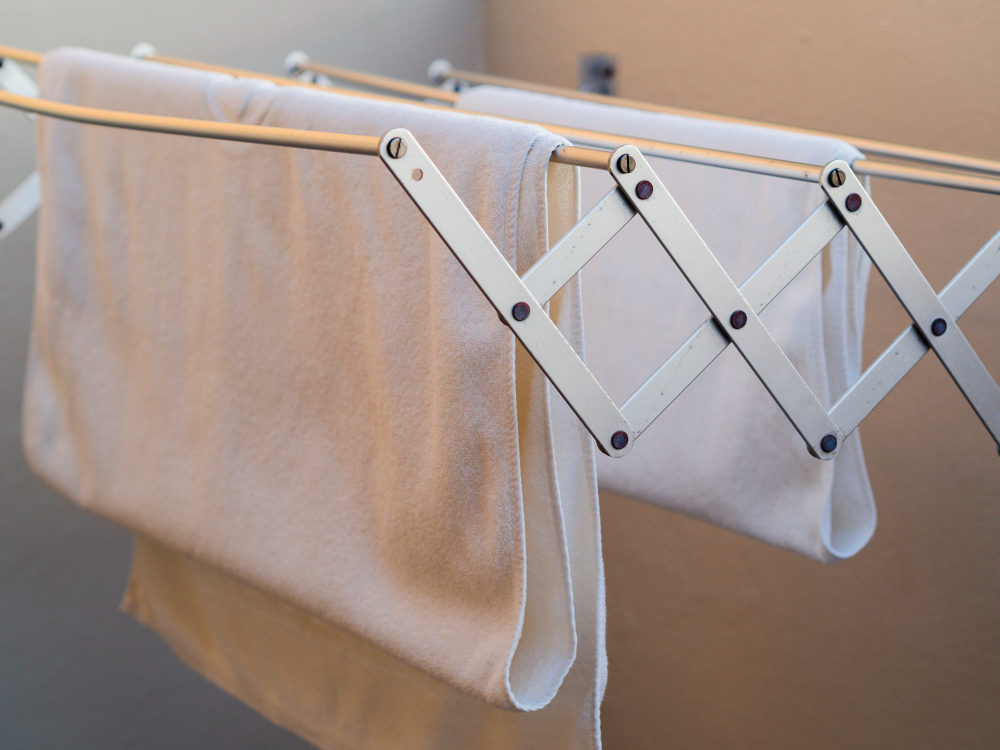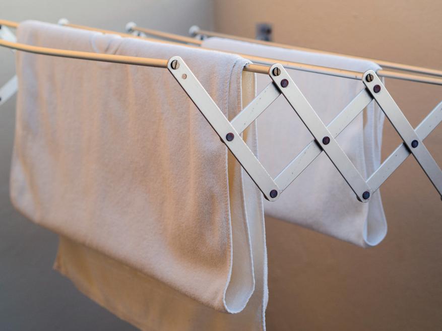 Лучше всего — горизонтальная сушка на сетке или расправленное положение на верёвке в тени. Полотенца и постельное — низкотемпературная сушка в машине.