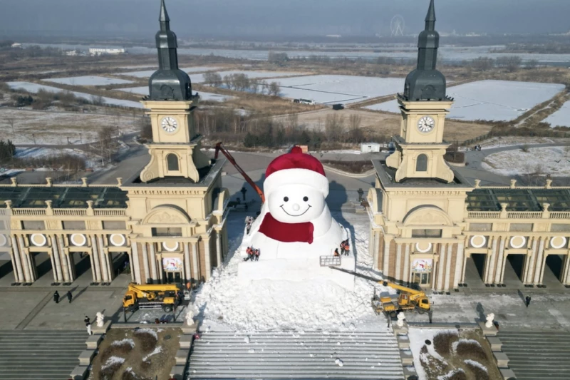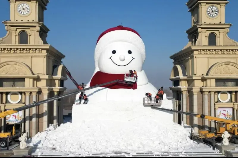 164 человека за 11 дней создали гигантского снеговика в Харбине
