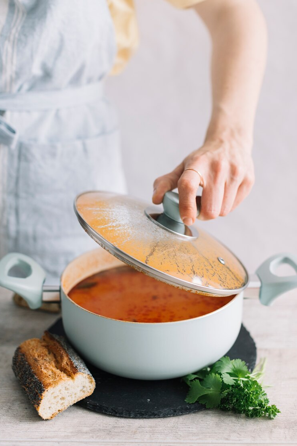 Лучший выбор — кастрюли с керамическим или титановым покрытием, так как они более долговечны и безопасны по сравнению с дешёвым тефлоном.
