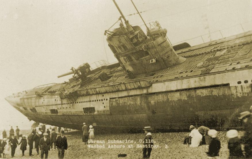 Первая мировая война открыла миру подводные лодки и их разрушительную силу. Первоначально немецкие подводники всплывали и под угрозой приказывали невооруженным торговым судам покинуть борт, но по мере продолжения войны тактика применения подводных лодок совершенствовалась. Со временем субмарины превратились в серьезную угрозу для судоходства, атакуя без предупреждения трансокеанские суда из морских глубин. Вот почему в апреле 1919 года для жителей Гастингса, Великобритания, стало настоящим шоком, когда они проснулись и обнаружили массивную подводную лодку-призрак, лежащую на популярном туристическом пляже.