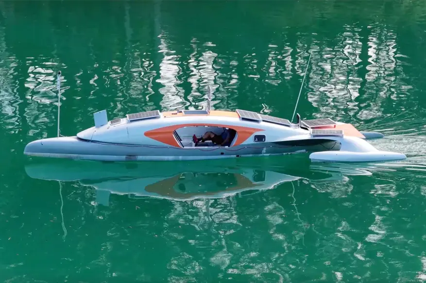 Тримаран оснащён двумя гребными винтами, частично расположенными над водой, что снижает гидродинамическое сопротивление. Система педального привода включает в себя маховик с высокой инерцией для компенсации неравномерности вращения. На судне установлены солнечные батареи, спутниковая связь, навигационное оборудование и спасательная шлюпка.