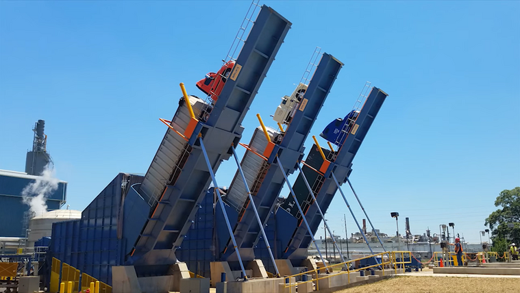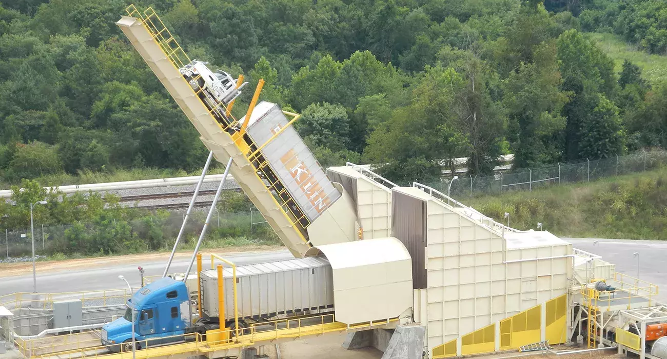 Процесс разгрузки происходит максимально быстро и просто. Сначала грузовик заезжает на специальную наклонную платформу, после чего водитель покидает его. Затем грузовик надёжно фиксируется на платформе, открываются двери кузова, после чего платформа медленно поднимается до необходимого наклона. По мере того, как платформа изменяет свой угол наклона, сыпучий груз под действием гравитации высыпается в специальный приемный бункер. Специализированная платформа может поднять грузовик относительно земли под углом до 63 градусов. При необходимости заказчик может установить транспортерную ленту, и быстро переместить сырье из бункера в промышленный цех.