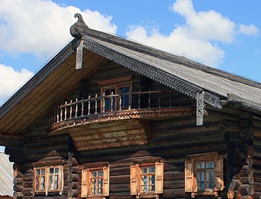 При этом балкон, расположенный на фронтоне избы и вынесенный вперёд, делал стенку фронтона более устойчивой и работал как дополнительный навес. Он принимал на себя дождь и талую воду, защищал стену под ним от гниения и уменьшал продуваемость фронтона.