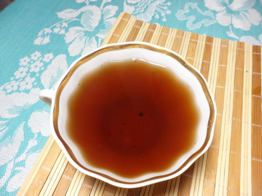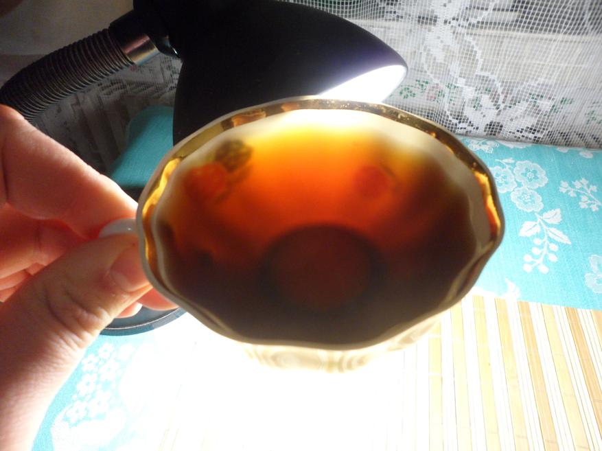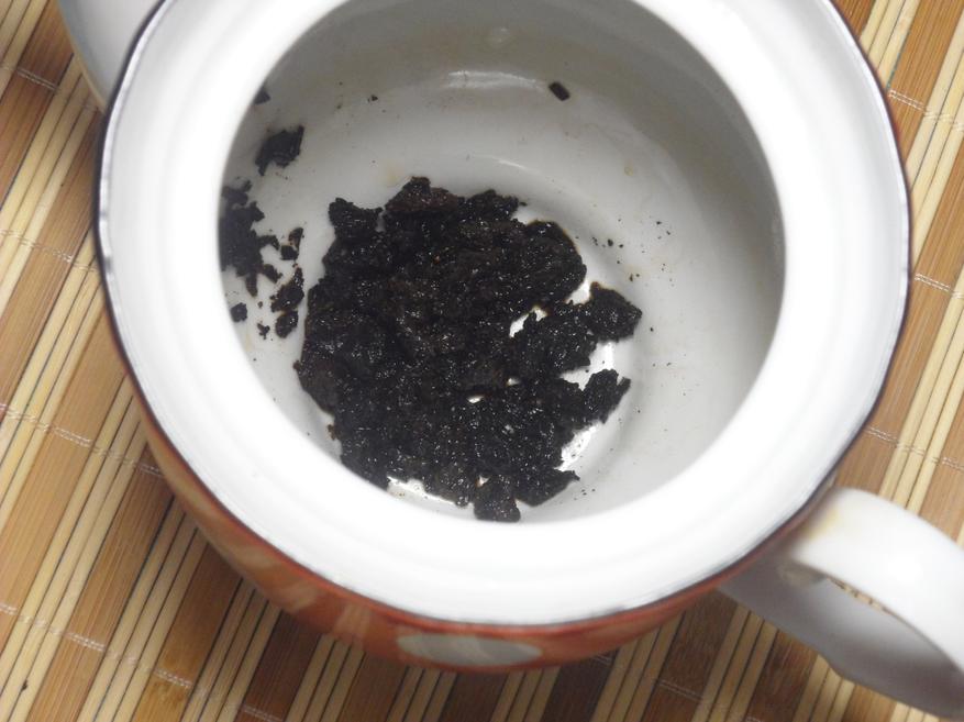 Если не измельчать чай, то промывок следует делать две, а так хватит и одной. Промывку не фотографировал — просто мутная, бурая жидкость со специфическим запахом.
