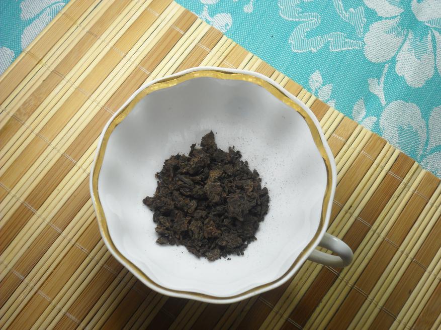 Комки чая аккуратные. Однородные — отсутствуют выделяющиеся или поврежденные. Плотность не одинакова. Меньшие куски легко ломаются руками, крупные бывают плотными настолько, что их приходится чем то раскалывать.