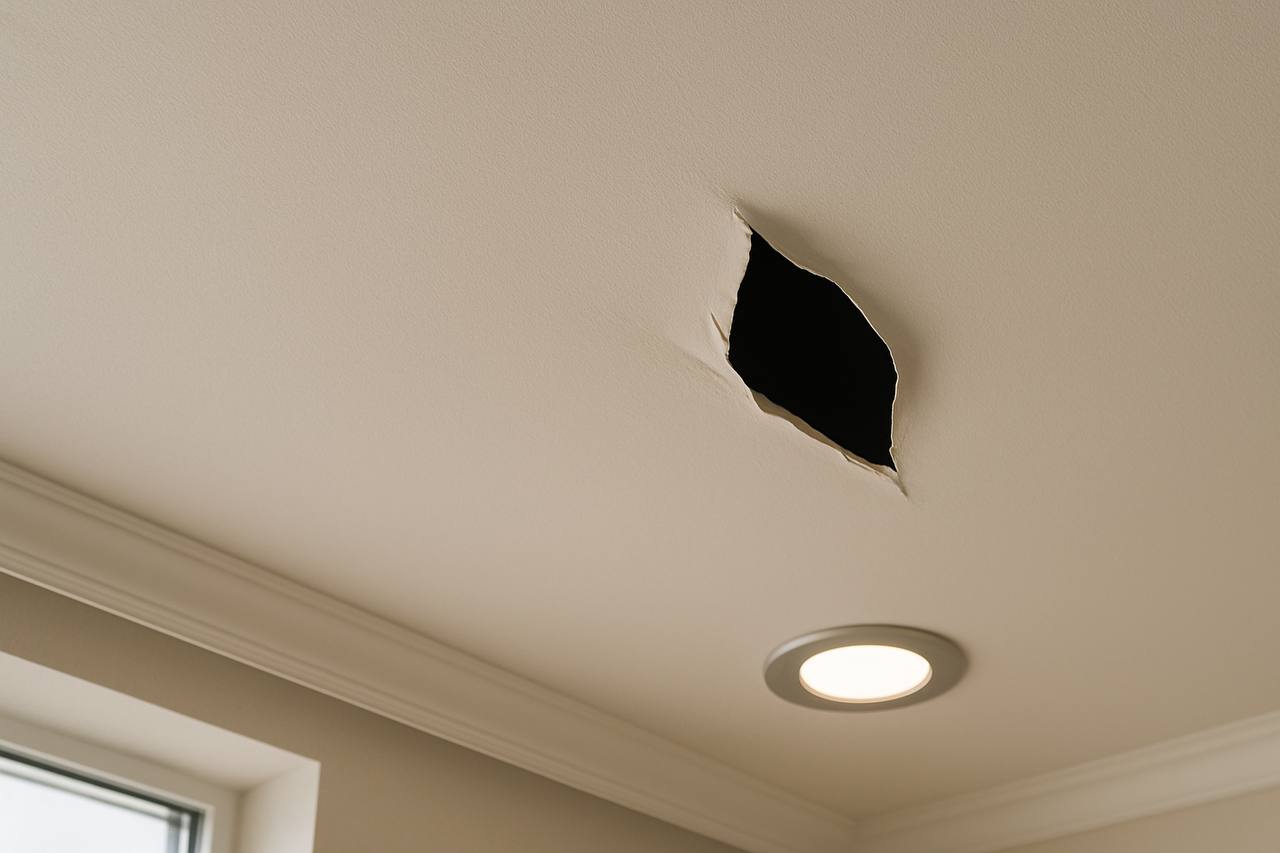 Натяжные потолки — стильное, практичное и долговечное решение. Они скрывают неровности, маскируют проводку и придают помещению аккуратный вид. Но даже у самой аккуратной конструкции может случиться неприятность — появляется дырка. Причины могут быть разными, но что же делать в такой ситуации, стоит ли сразу вызывать мастера, или можно попытаться решить проблему самостоятельно? Разбираемся вместе в этой статье.