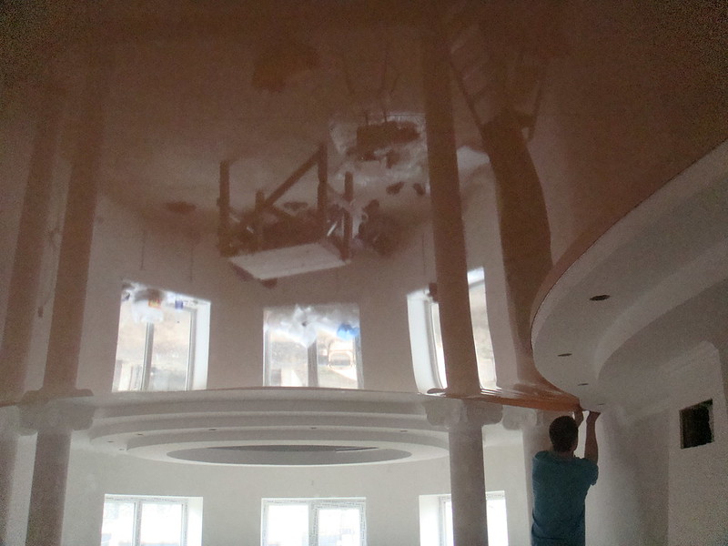 Если повреждение большое, и края уже расползаются, или потолок уже начал провисать — пора обращаться к мастеру. Ну, или же у вас совершенно нет никакого опыта, и вы быстро и качественно хотите устранить порезы или дырки на потолке — то также стоит обратиться к специалисту.