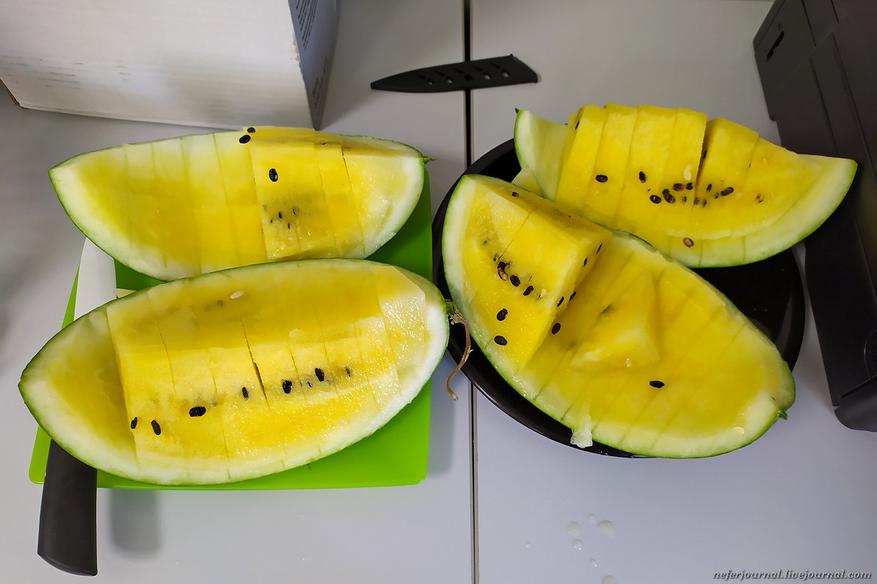 Арбуз, похожий на кабачок: снаружи желтый, а внутри...