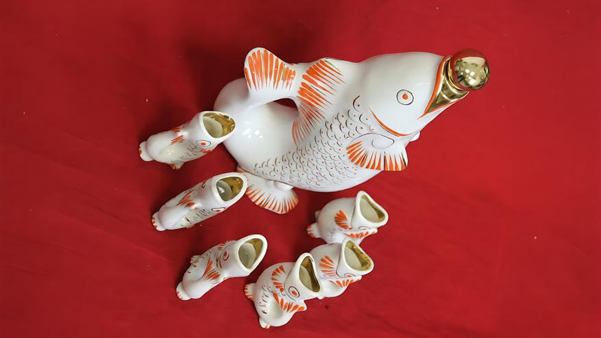 Однако налицо противоречие: применять комплект на практике оказалось затруднительно. Миниатюрные ёмкости повторяли анатомию настоящей рыбы, превращая распитие в акробатический номер. Переливание жидкости из керамического карпа с хвостовым плавником требовало определённой сноровки. Результат предсказуем — утварь мгновенно переквалифицировалась из практичной в исключительно интерьерную.