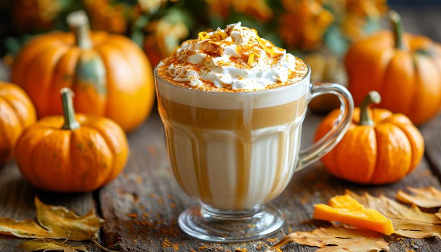 Классика осени — это, конечно же, тыквенный латте. Этот напиток сочетает в себе нежную текстуру кофе и пряные нотки тыквенного пюре.
