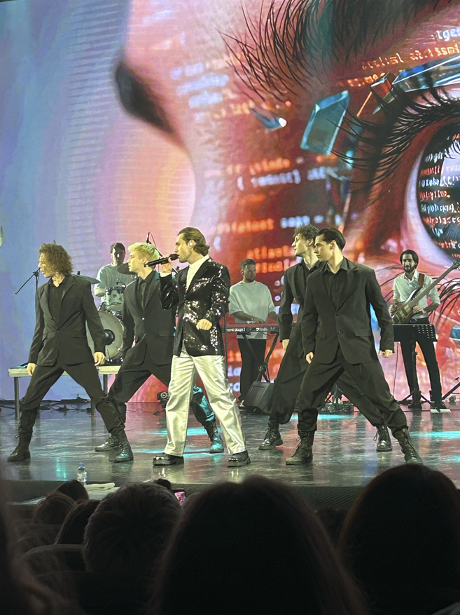 Сам концерт выдался очень ярким. Вместе с артистами на сцене присутствовали и бэк-вокалисты, и музыканты, и актёры театра Аллы Духовой Todes. Все они создавали единую композицию с яркими костюмами и движениями.