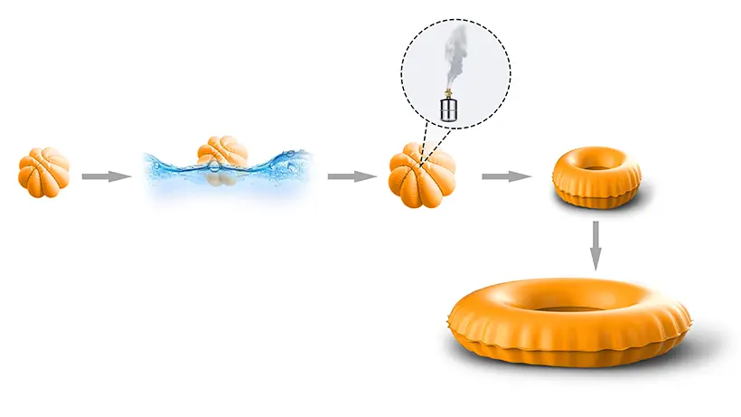Разработчики компании Gree Electric Appliances представили новое спасательное устройство под названием «сжатая спасательная бомба» — компактную сферу, которая при контакте с водой автоматически превращается в полноразмерный спасательный круг. Устройство предназначено для экстренных ситуаций на воде и отличается минимальными размерами в сложенном состоянии.