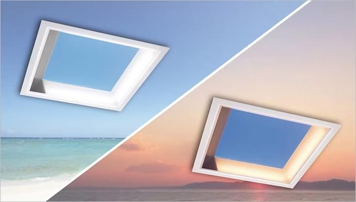 Аналогичные решения есть у Mitsubishi Electric. Светильники Misola имеют небесный оттенок, а из четырех граней светильника подсвечиваются только три, что создает впечатление естественного освещения. Угол падения и спектр света меняются в соответствии с движением солнца по небосводу.