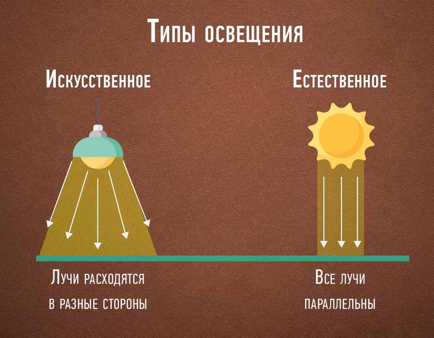 Таким образом, чтобы создать иллюзию солнечного освещения, нужен источник, испускающий параллельные лучи света, и материал со свойством рэлеевского рассеяния.
