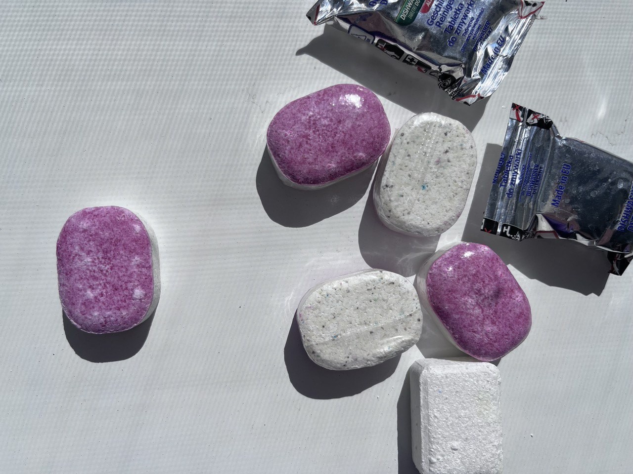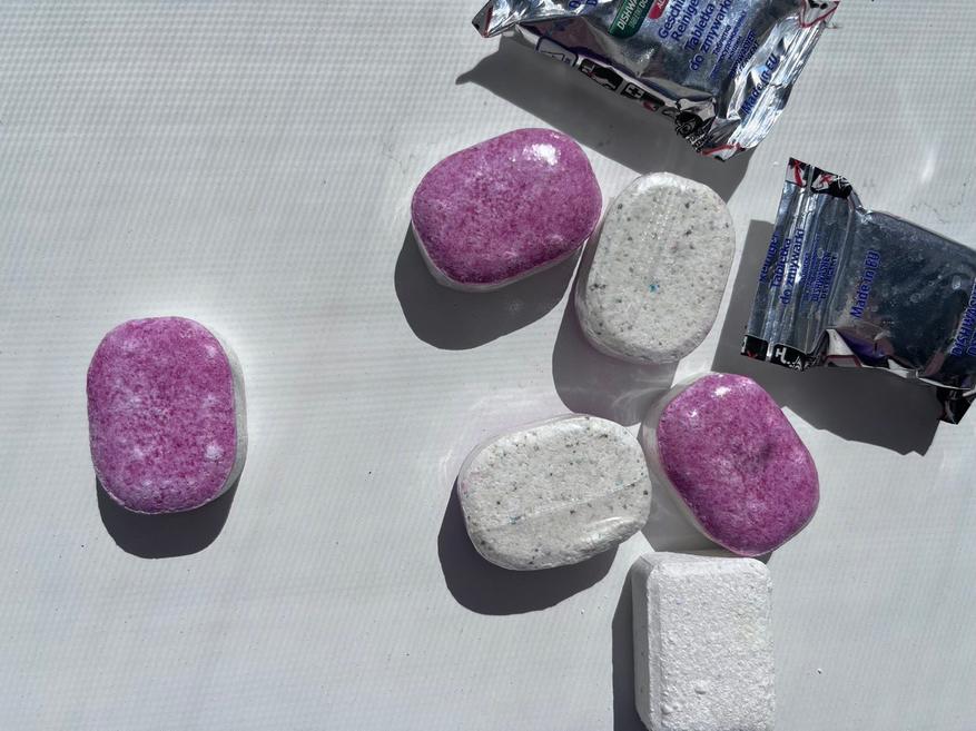 Не используйте таблетки на алюминии и окрашенных поверхностях — могут остаться пятна.