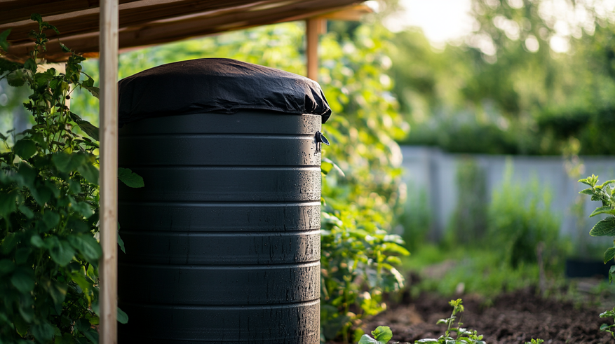 Если у вас пластиковая бочка с полупрозрачными стенками, её обязательно стоит покрасить в тёмный цвет — лучше всего в чёрный. Такая окраска не пропускает солнечные лучи внутрь, а значит, препятствует активному росту зелёной микрофлоры. Альтернативой может быть плотная тёмная плёнка или ткань, обмотанная вокруг.
