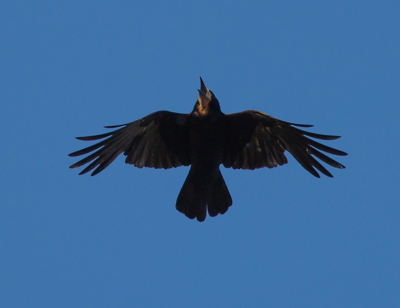 Если вы видите стаю в поле или в парке, скорее всего, это грачи, а вороны чаще встречаются поодиночке или парами.