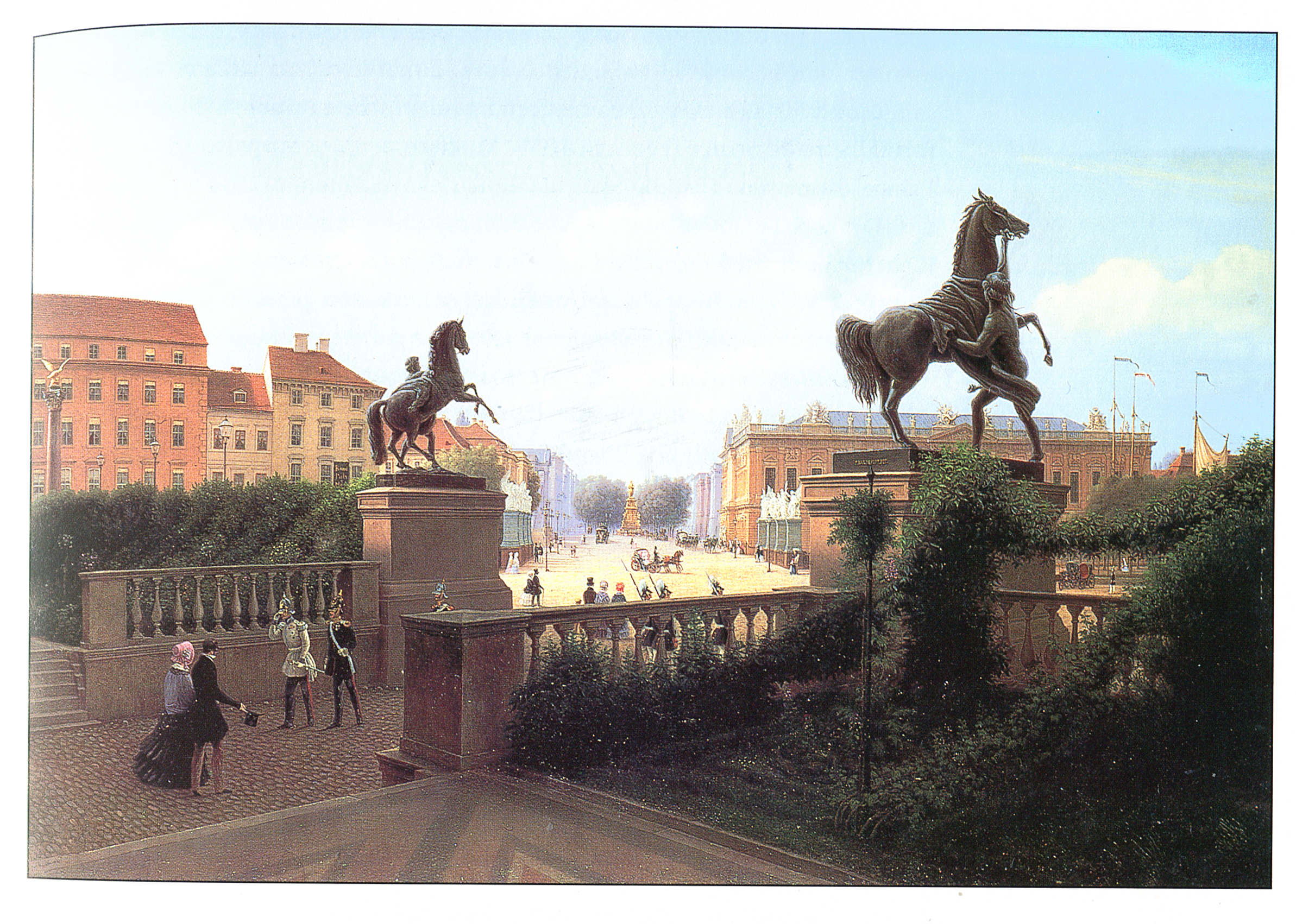 Судьба скульптур неразрывно связана с внешней политикой Николая I. В 1842 году прусский король Фридрих Вильгельм IV, будучи с визитом в Санкт-Петербурге, был так восхищен работой Клодта, что российский император решил сделать широкий жест. Были отлиты две точные копии первых скульптурных групп, которые отправились в Берлин.