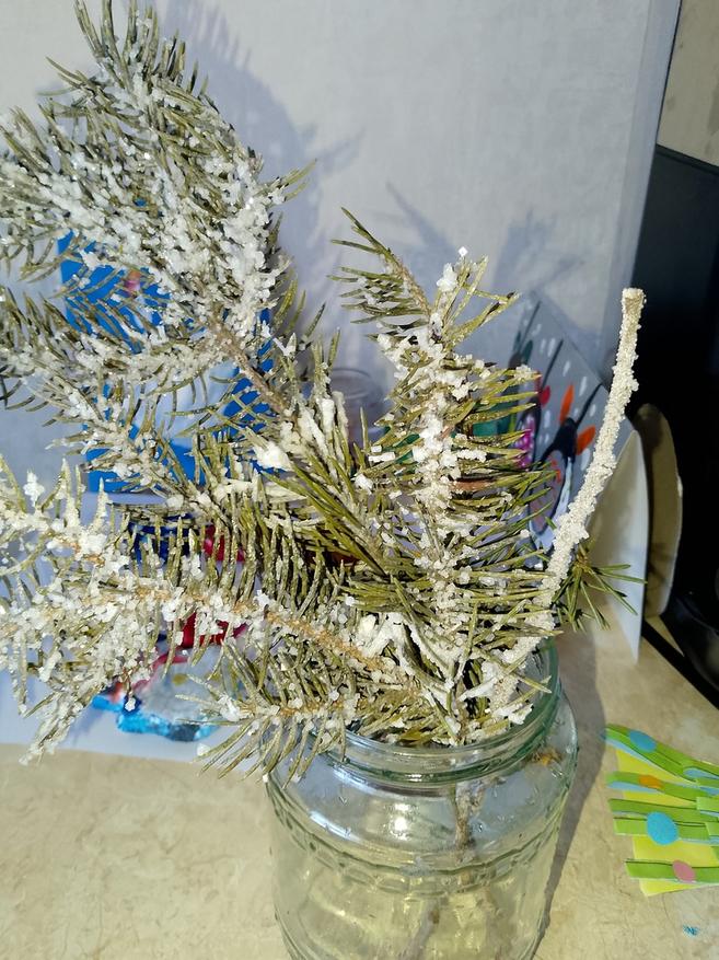Как создать заснеженные еловые ветки с помощью поваренной соли для декора