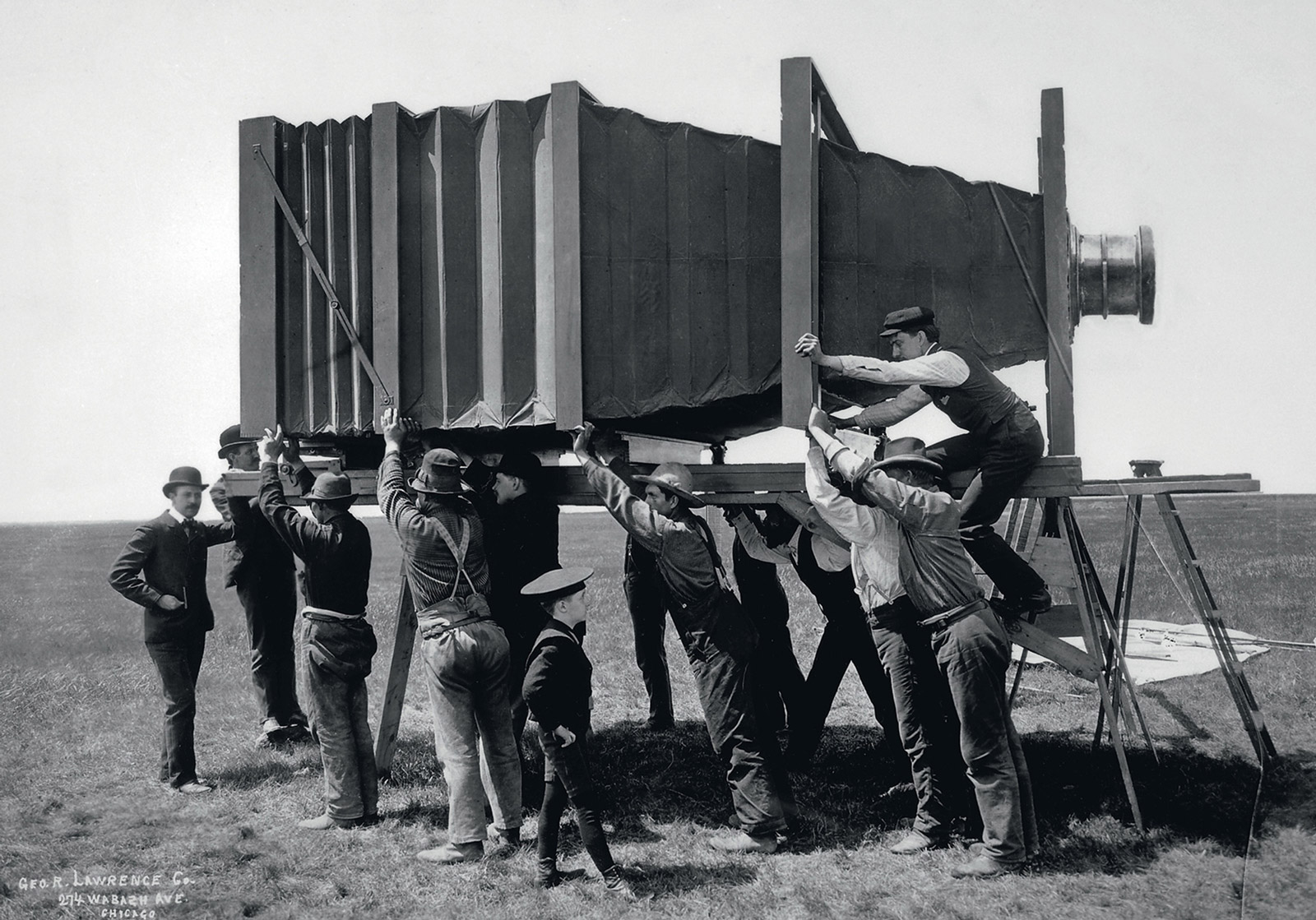 Чтобы сделать снимок, была нужна целая команда. Для переноски мамонт-камеры были необходимы усилия 15 человек. Для установки гигантской стеклянной пластины требовалась слаженная работа четырех человек, а еще шестеро управляли фокусировочными мехами и объективом.