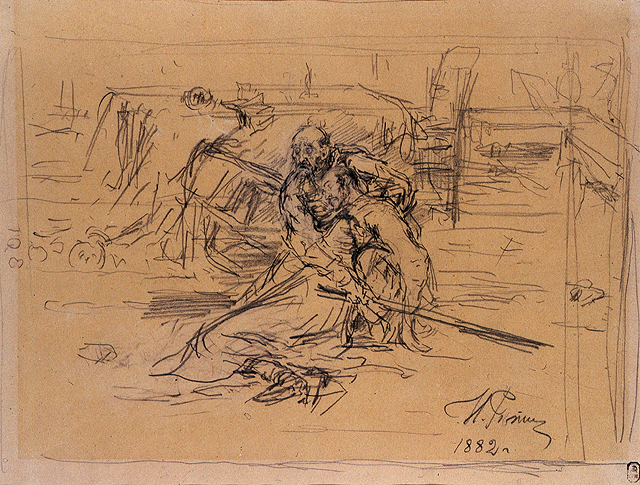 К слову, малоизвестным фактом является то, что Илья Репин нарисовал не одну, а две картины про Ивана Грозного и его сына, царевича Ивана. Вторая была написана в 1909 году (спустя 24 года после первой) специально для предпринимателя и коллекционера икон Степана Павловича Рябушинского.