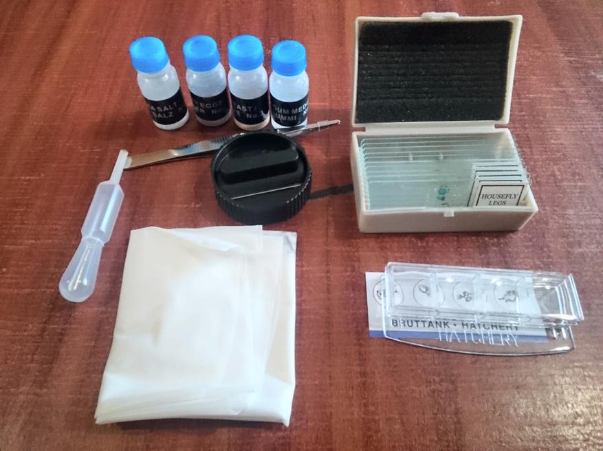 Принадлежности для опытов были расположены в специальном кейсе, что очень удобно при использовании. Кстати, это очень хорошая задумка разработчиков – добавить к микроскопу принадлежности для опытов и подробное руководство. Даже я заинтересовался миром биологии, оказывается очень интересно.