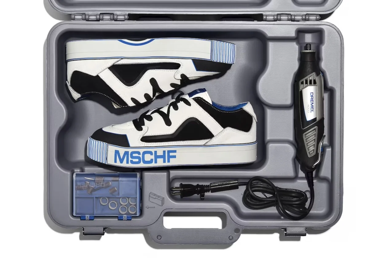 Необычные кроссовки появились у MSCHF. Новая серия Gobstomper создана совместно с Dremel и не просто так. Кроссовки поставляются в пластиковом кейсе стилизованном под набор инструментов. И набор инструментов играет тут не последнюю роль.