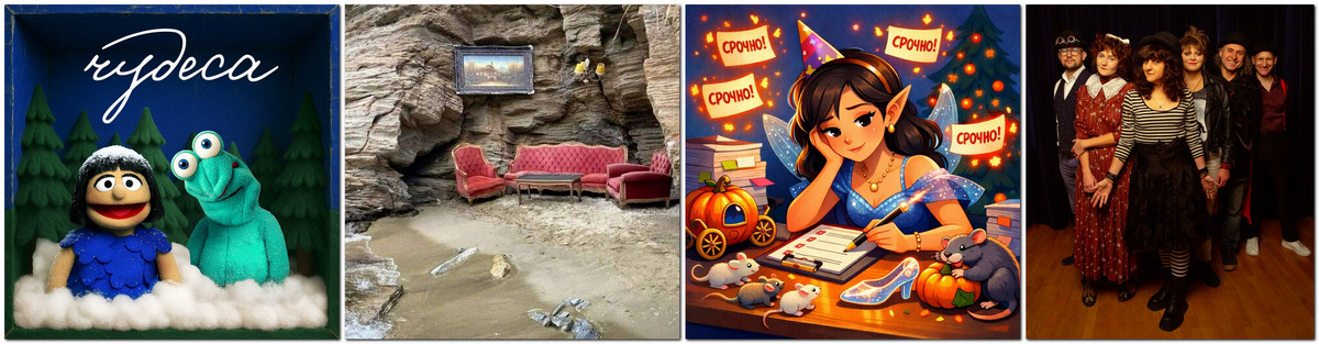 Последний проект, о котором я сегодня расскажу, не использует не только нейросети, но и даже компьютеры в своём творчестве. Это «Арт-кабаре СеЛяВи», сайд-проект кавер-группы «Елисейские поля» (редкий случай, когда в репертуаре основного проекта каверы, а в сайд-проекте авторские песни).