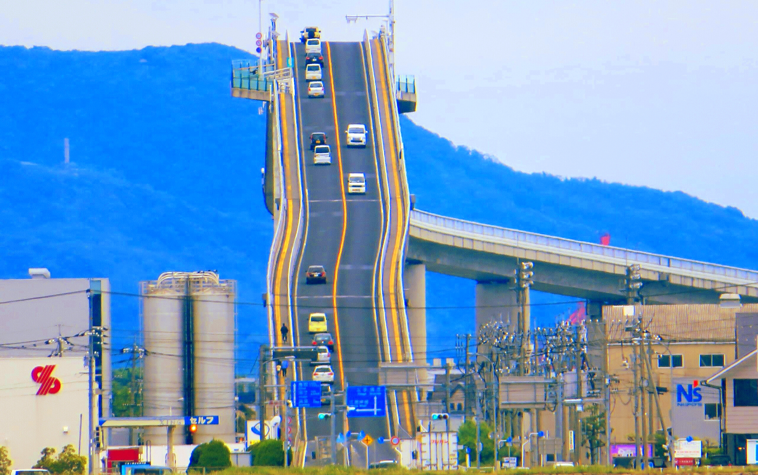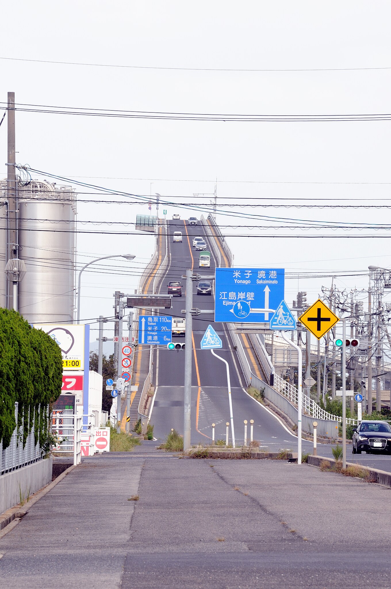 Вы могли встретить фотографии моста Эшима Охаси на просторах интернета. Постройка стала очень популярной, поскольку его подъем со стороны кажется невероятно крутым, и как будто уходящим просто в небо. Есть мнение, что многие, кому предстоит проехать по этому мосту, боятся это делать, насмотревшись фотографий моста в социальных сетях. Хотя мост для прохода кораблей под ним действительно довольно высокий, ездить по нему не так уж страшно. Давайте разберемся, почему это сооружение на фото выглядит таким необычным, а также имеет такой крутой подъем вверх. Также рассмотрим моменты, связанные с безопасностью дорожного движения, и поймём, были ли допущены какие-то ошибки людьми, спроектировавшими этот мост.