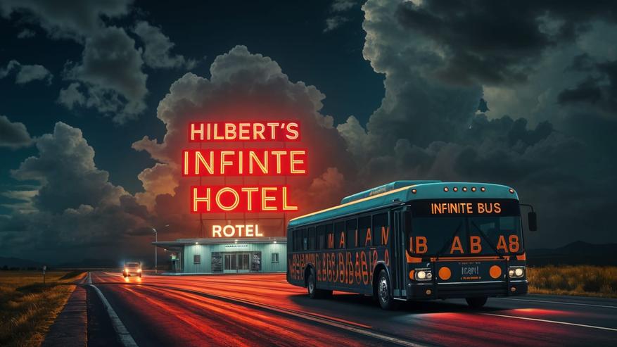 Ваш отель работает и полностью заселён, вы получаете бесконечный доход с бесконечного числа постояльцев, но вдруг прибывает ещё один. Что вы будете делать, куда его поселить? Вы сталкивались с такой ситуацией бесконечное число раз: если прибывает один новый гость, всех гостей можно переместить в номер на единицу больший, чем их текущий номер. Гость в номере 1 переезжает в номер 2, гость в номере 2 — в номер 3, гость в номере бесконечность переезжает в номер бесконечность + 1 и так далее. Номер 1 будет свободен для нового гостя. Ну, через бесконечно долгий промежуток времени, когда все наконец подвинутся.