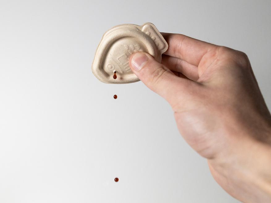 Объем нового контейнера составляет 12 миллилитров, что превышает размер стандартных пластиковых аналогов. Компания пришла к такому решению после наблюдений за поведением посетителей ресторанов, которые берут по несколько маленьких контейнеров одновременно. Материал сохраняет герметичность в течение 48 часов без протечек.