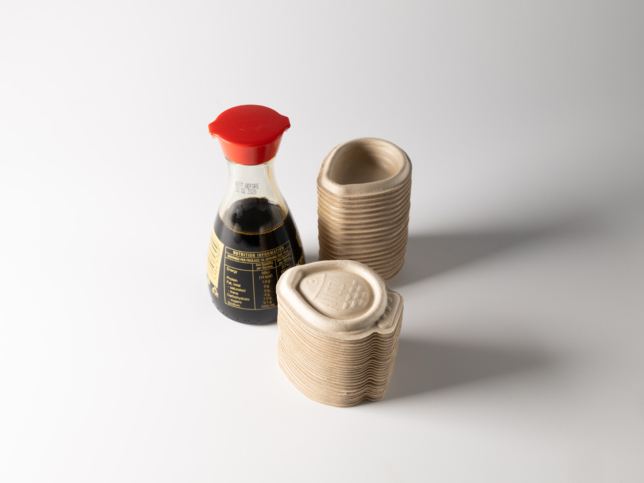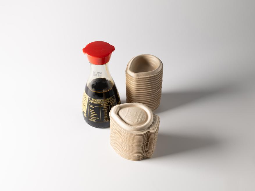 Новые контейнеры изготовлены из жмыха сахарного тростника — побочного продукта переработки сахарного тростника, который обычно утилизируется как отходы. Материал полностью разлагается в компостных условиях за четыре-шесть недель. Традиционные пластиковые контейнеры для соевого соуса разлагаются около 400 лет.