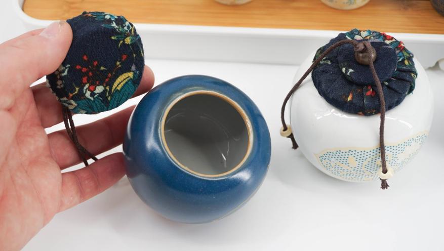 - Чаегуань — небольшие баночки для хранения запаса чая. В наборе были две небольшие (180 мл) баночки-чаегуань, в которых можно хранить два сорта чая.